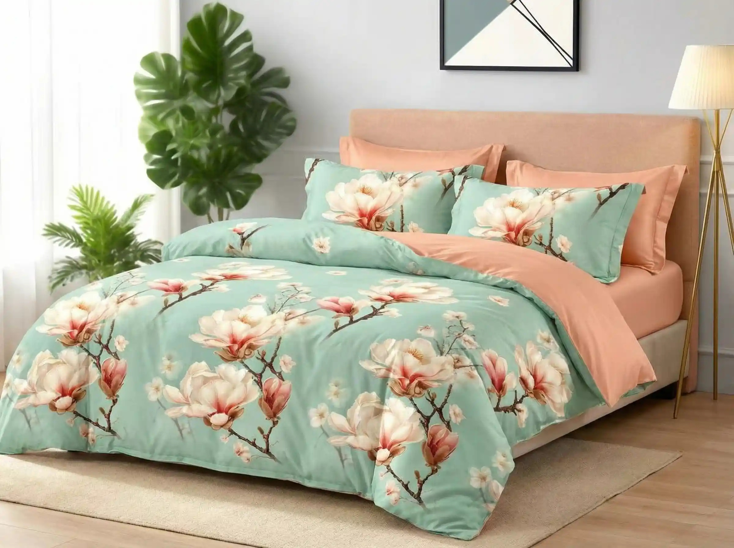 Cearșaful de pat și cearșaful de pilotă este imprimat exact ca modelul de pe cearșaful de pilotă.